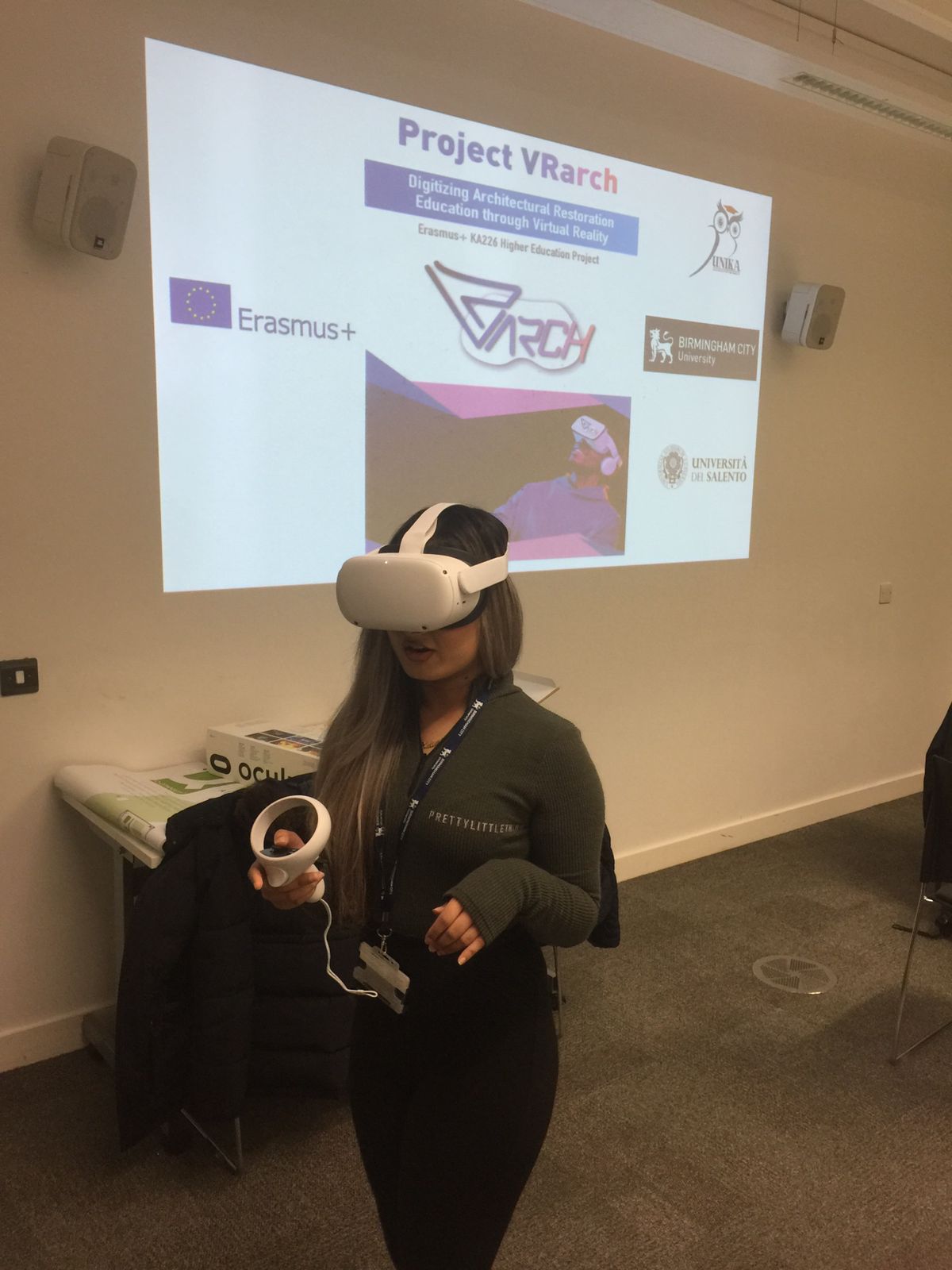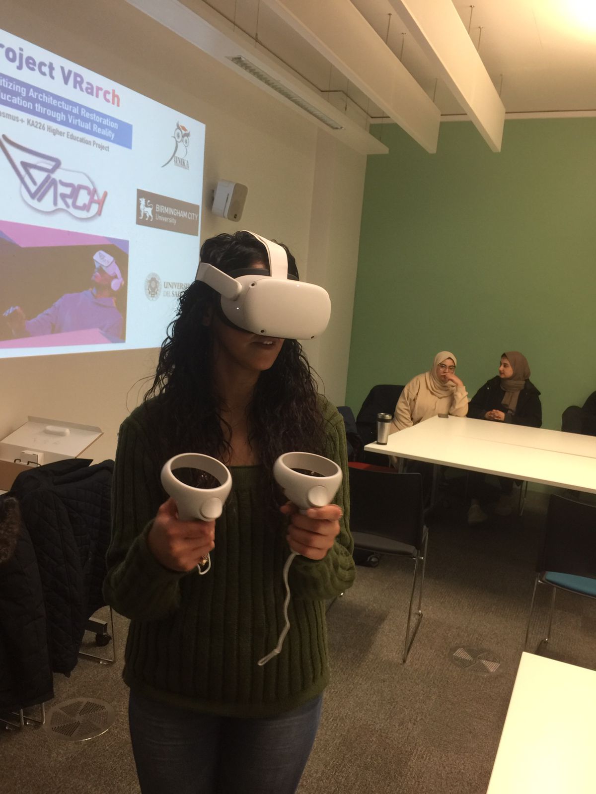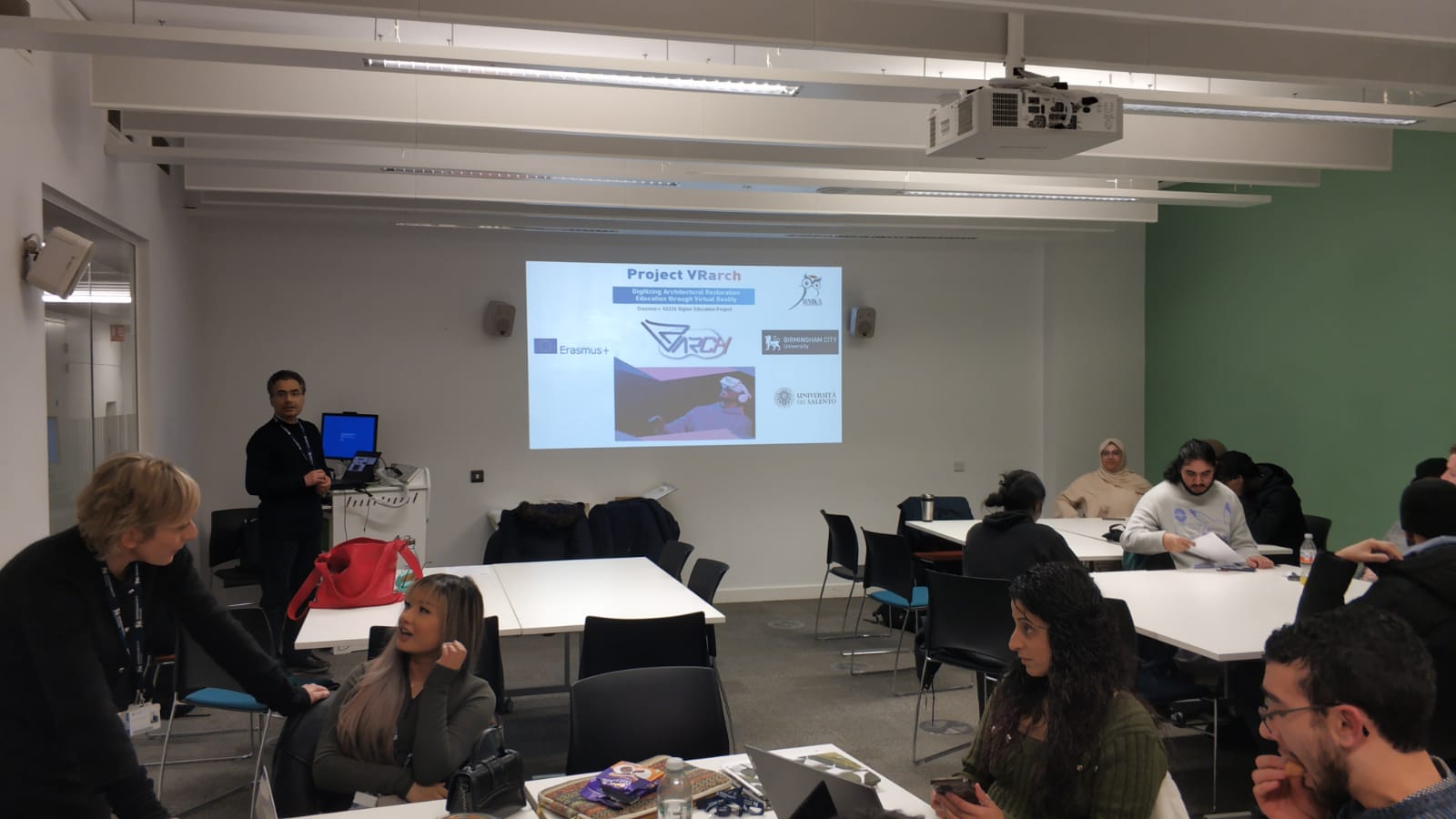 Our project and its outputs were introduced to the students and academicians of the Building Environment Department of Birmingham City University at the event held in Curzon Building on February 6, 2023. During this dissemination activity coordinated by Prof. Dr. Huseyin Seker, students, and academics at BCU learned the details VRarch project and tested it.